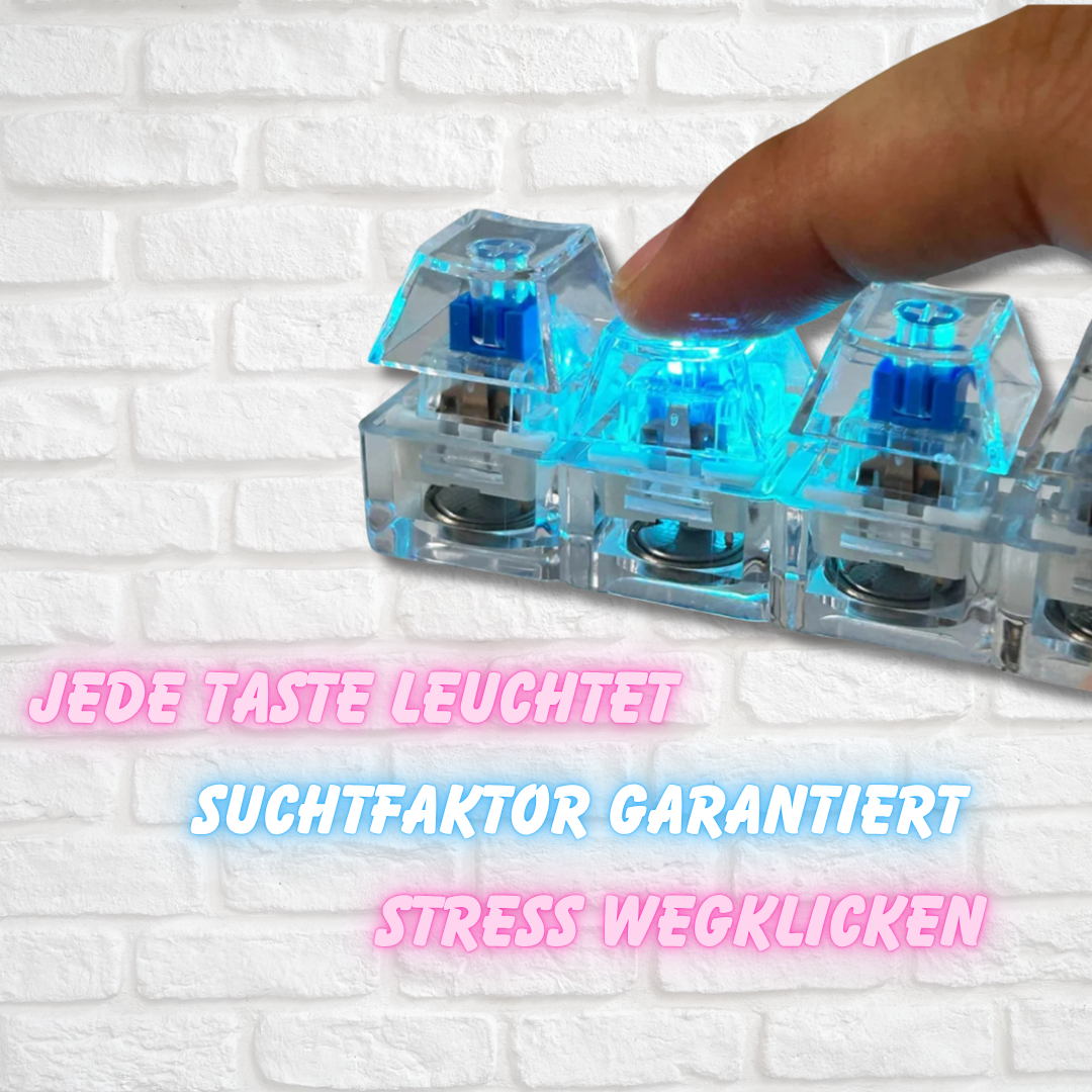 Andere Spielzeuge beschäftigen nur die Hände. NeoKlick bietet echtes Klick Gefühl, Licht Reaktion und kleine Fokusmomente für Ruhe und Klarheit.